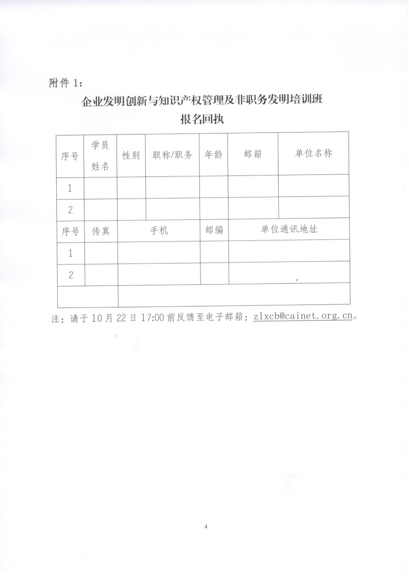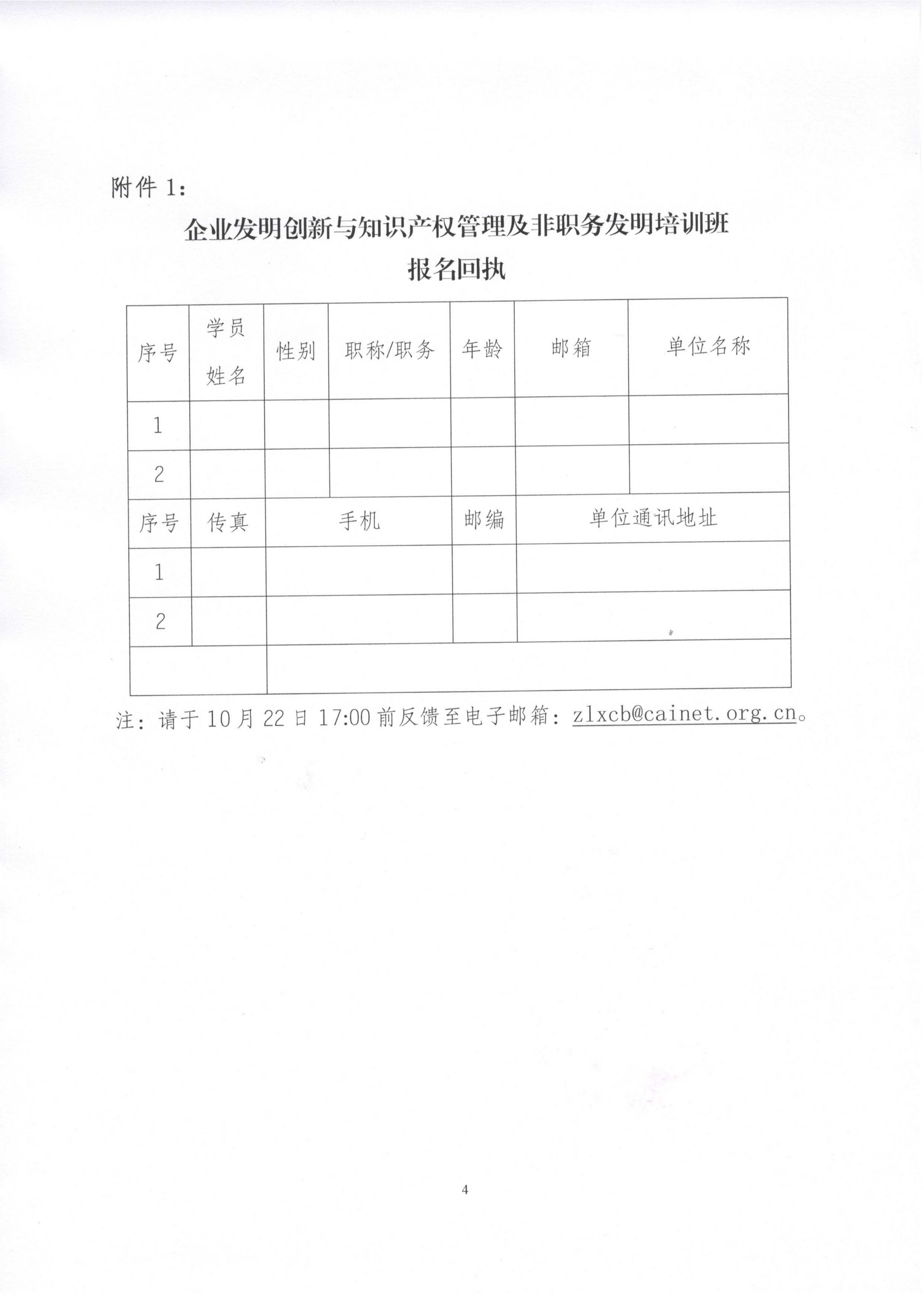 附件1 关于举办“企业发明创新与知识产权管理及非职务发明培训班”--报名回执.docx
