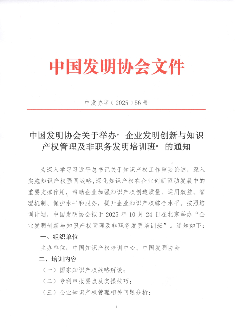 国家知识产权局委托 举办企业发明创新与知识产权管理及非职务发明培...
