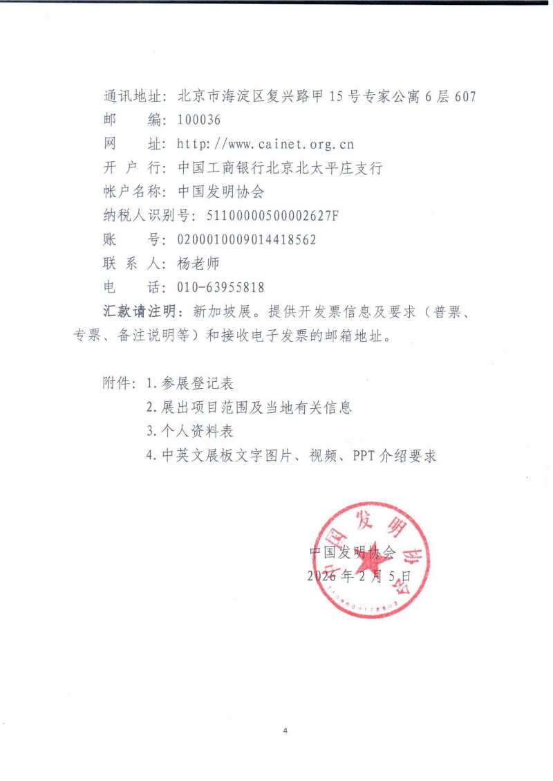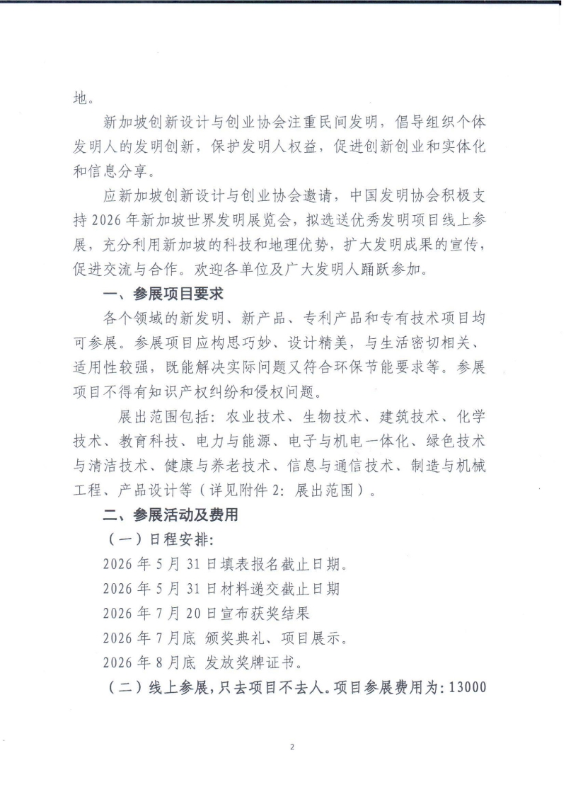 附件1 参展报名表 Participation Form - WoSG'26 中英对照.docx附件2 新加坡WoSG 2026 展出项目范围及当地有关信息.docx附件3 个人资料表 2026 新加坡WoSG‘26’.docx附件4 中英文展板文字图片、视频、PPT介绍要求 新加坡WoSG‘26.docx