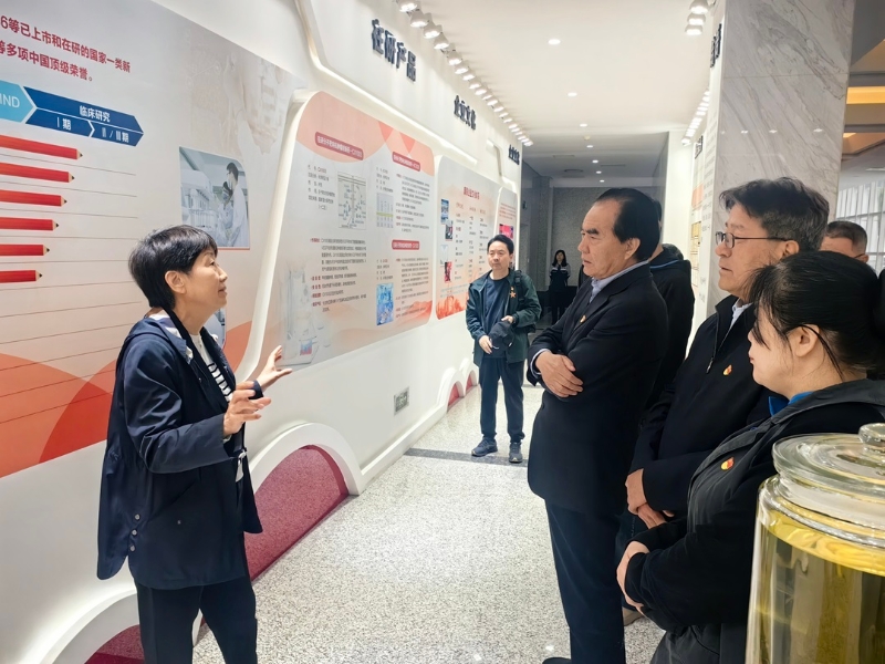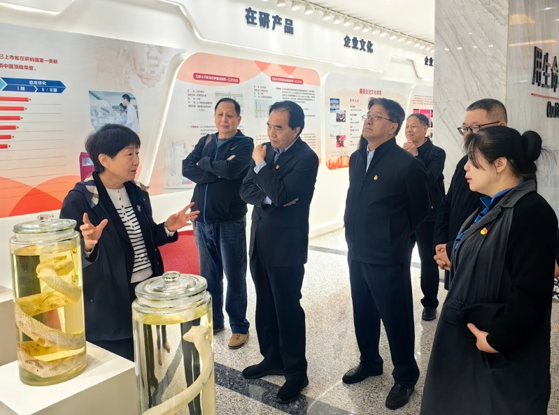 协会同志参观了康辰药业多年来在医药研发领域取得的丰硕成果,从获多项中国境内和全球发明专利的国家一类新药、国家重点新产品苏灵(注射用尖吻蝮蛇血凝酶),到一系列肿瘤靶向创新药物的研发历程和专利技术的展示,每一项成果都彰显了企业对发明创新的执着追求,康辰药业在药物研发过程中攻克的技术难题以及独特的创新理念,让大家深刻认识到科技创新在推动医药产业发展中的核心作用。